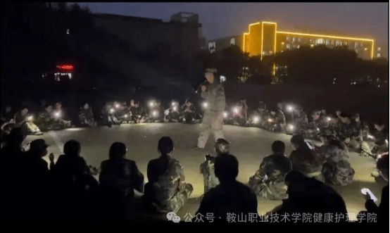 夜幕低垂,身着迷彩服的同学们围坐一起,唱军歌活动激情开场。“日落西山红霞飞,战士打靶把营归把营归……”歌声冲破夜的宁静。拉歌口号震耳欲聋,经典军歌被完美演绎。《强军战歌》点燃爱国情,灯光下大家朝气满满。激昂歌声驱散疲惫,留下团结、热血与难忘记忆。